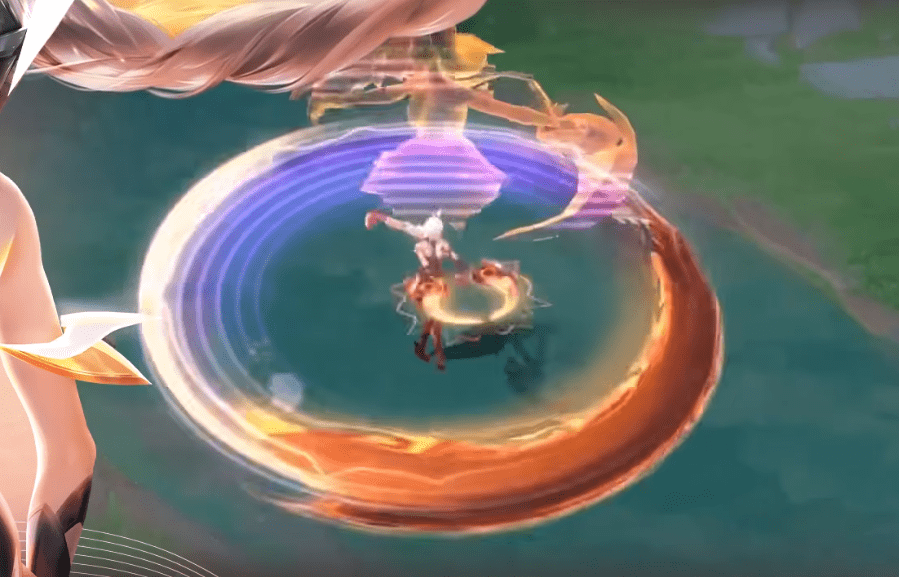 花木兰的燃曲之星对应的是国际服中叶娜WAVE·赤焰,其特效如下:这个效果仅供参考,国服的特效肯定不会一模一样,可能会是一个风格或相似配色。