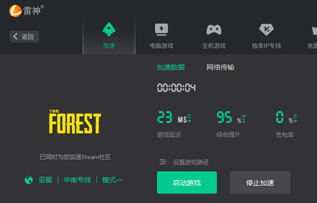 之所以会出现联机频繁掉线,主要是因为网络质量较差,导致服务器连接不稳定。这里可以借助雷 神加 速工具,对森林之子进行全程加速,能够快速改善网络环境,优化网络质量,联机更顺畅。输 入“雷神超会玩”,免 费 领 取 50小时。