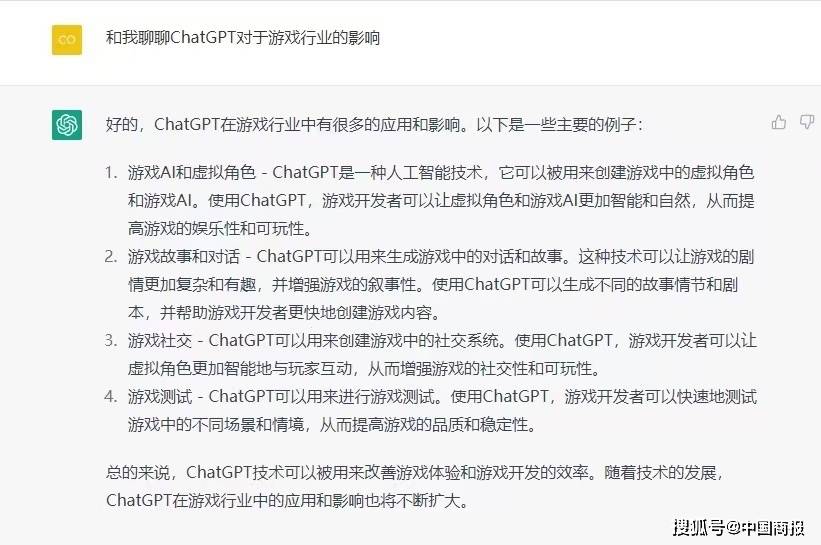 ChatGPT能为游戏行业带来什么?先看看ChatGPT是怎么说的吧。