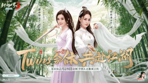 Twins古装合体,大牌明星齐聚,再续剑侠情!当国民女子组合阿Sa阿娇再度合体与《剑侠世界3》将会擦出什么样的火花?西山居新一代剑侠情缘系列手游《剑侠世界3》诚邀各位少侠:2月28日,携手Twins,探索焕然一新的至美江湖!