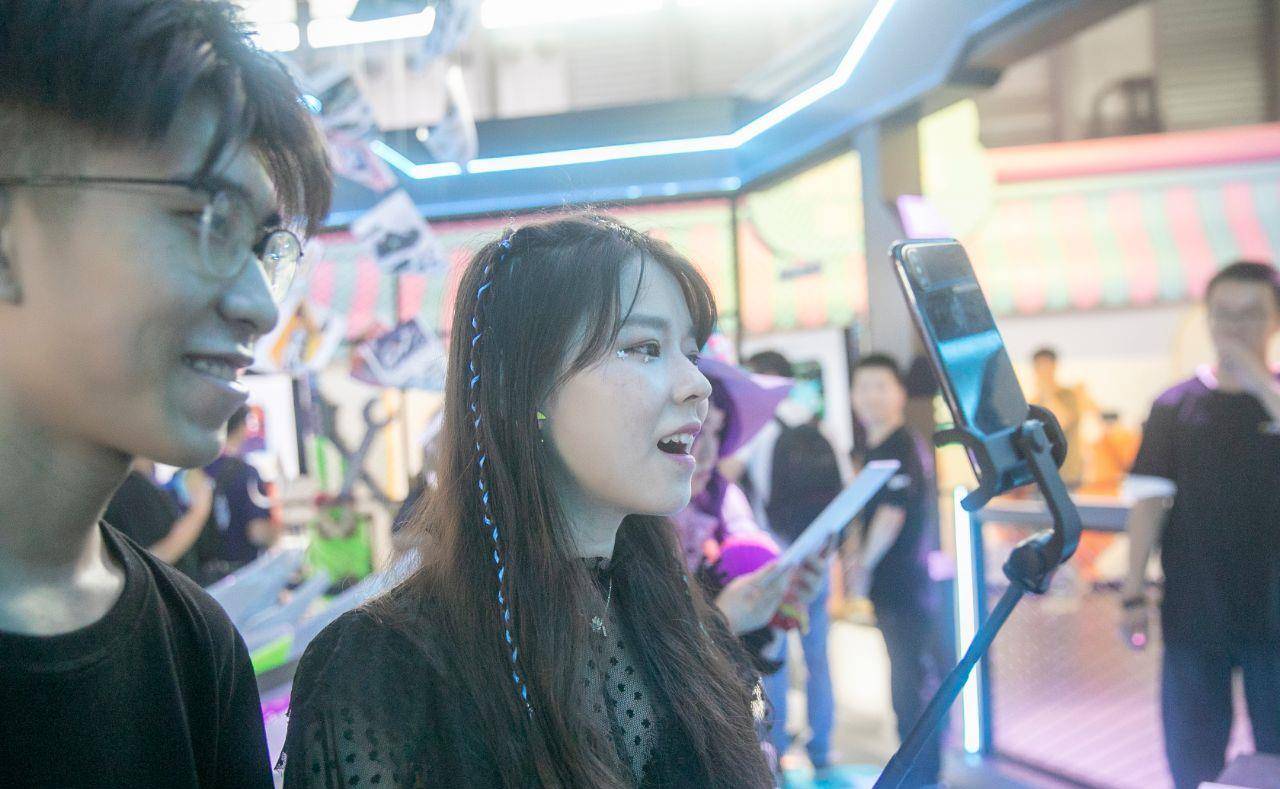 在在ChinaJoy现场,她不断地通过手机与粉丝们互动!