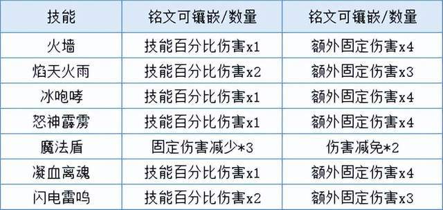 火墙、焰天火雨、冰咆哮、怒神霹霹雳、电闪雷鸣、魔法盾、凝血离魂