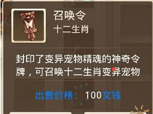 答:问道手游中100个召唤令即可召唤变异宠物了。