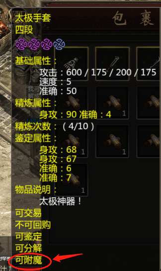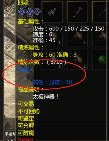 武器激活魔化属性前,你得有一把成手的武器。在铁匠那边购买的武器大多是不可魔化的,这就需要你前期在图鉴里不停的刷怪,打装备。有显示可附魔才行。