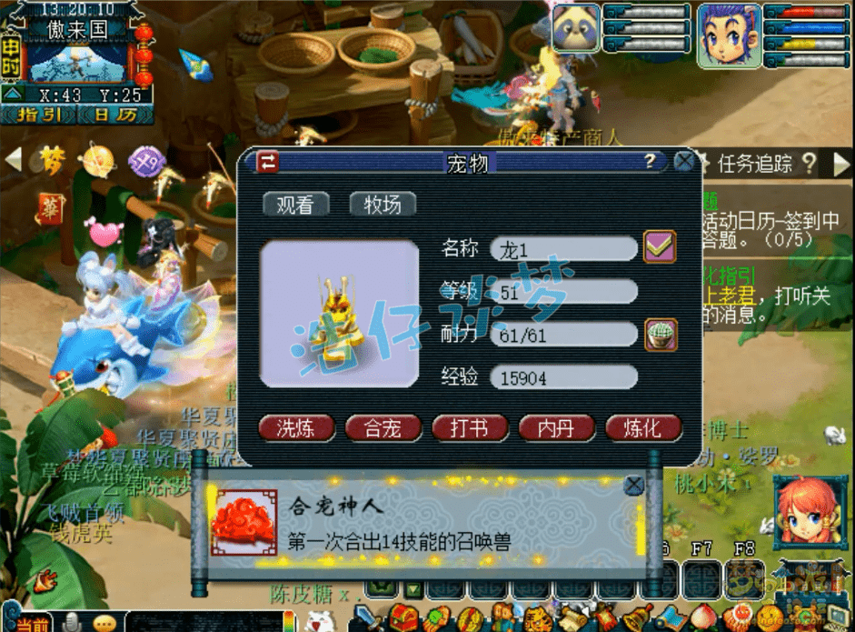 结果出的是魔化童子,跟童子的最多技能是一样的,而且连弹5点成就,其中就有14技能合宠神人成就,如果带净台,绝对算是逆袭了!