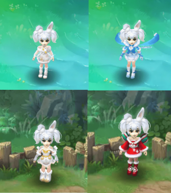 要知道,小福兔锦衣给人的第1印象,就是毛绒绒的。因此,搭配方面,尽量也选择一些毛绒绒的锦衣。比如说:喵绒绒锦衣、莹雪轻裘·晶澄锦衣、鹿角弯弯·咩咩锦衣、铃儿叮当锦衣。