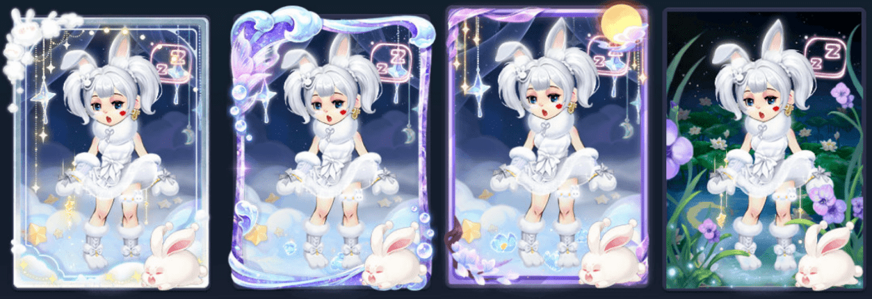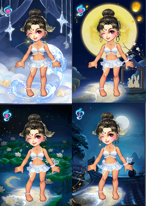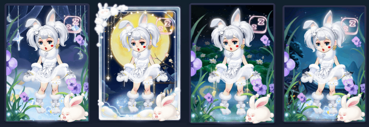 关于兔子的神话传说有很多,其中最被大家所熟知的非与嫦娥一起居住在月亮上的玉兔莫属。因此,玩家可以选择与月亮相关的背景类彩饰。