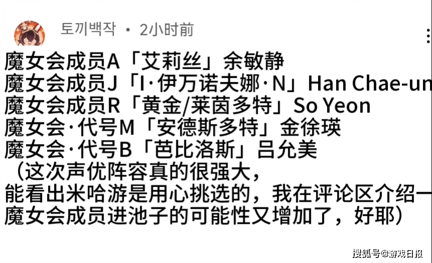 不过在本次“魔女的茶会”PV中,其他语种的配音也没让着中配,受到了大量好评。尤其是韩国的原神玩家,在看到余敏静、吕允美等韩国大神级声优的出现的时候,直接发出了“原神真是疯了吧”的感叹!可见原神在声优的选择方面越发能够贴合角色形象、符合更多玩家的想象,进一步激发了玩家对可能出现的新角色的期待。