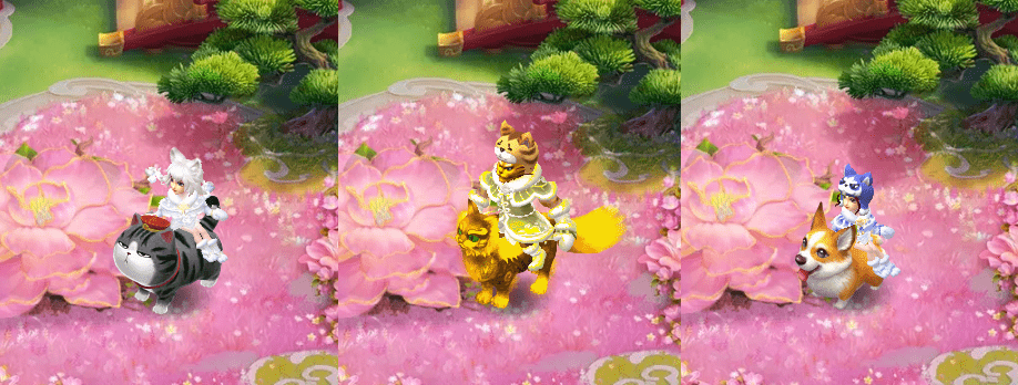 除此之外,“小福兔”锦衣搭配“喵绒绒”或“黄色童真猫猫帽”头饰可让少侠们秒变喵星人,而搭配“蓝色顽皮小狗帽”而能秒变汪星人,是喜欢小猫和小狗的少侠首选。值得一提的是,游戏内目前有很多与小猫和小狗有关的祥瑞,这其中就包括备受大家喜爱的“福气冲天·吾皇”、“赤瞳妖猫”以及“萌萌小狗”等祥瑞,少侠们可以自由穿搭和配色,让自己的角色更具个性!