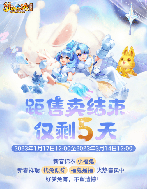 2023新春锦衣“小福兔”、新春祥瑞“钱兔似锦”和“福兔是福”售卖倒计时仅剩5天,各位少侠是否想穿搭出一套萌趣可爱的动物装扮呢?游戏内,与动物有关的锦衣和祥瑞十分丰富,通过将其与新春锦衣和祥瑞一起穿搭,绝对能给少侠们带来很多欢乐与惊喜!