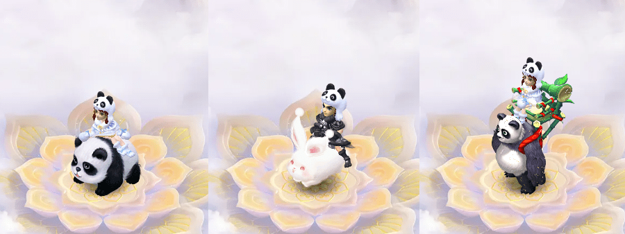 与此同时,新春锦衣“小福兔”搭配“懒洋洋熊猫头饰”还能让少侠们拥有一套熊猫装。从整体上来看,这种穿搭会给人一种十分慵懒惬意的感觉,很符合熊猫的特点。而且在与祥瑞进行搭配时,新春祥瑞“福兔是福”、“熊猫团子”以及“竹林熊猫”也都是特别不错的选择,能够让各位少侠的熊猫套装更加完美!