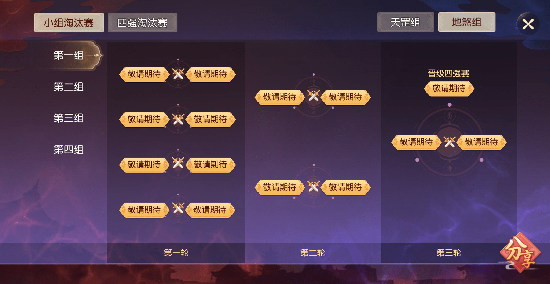 第1、2、3轮,小组内的队伍随机匹配,获胜队伍进入下一轮;