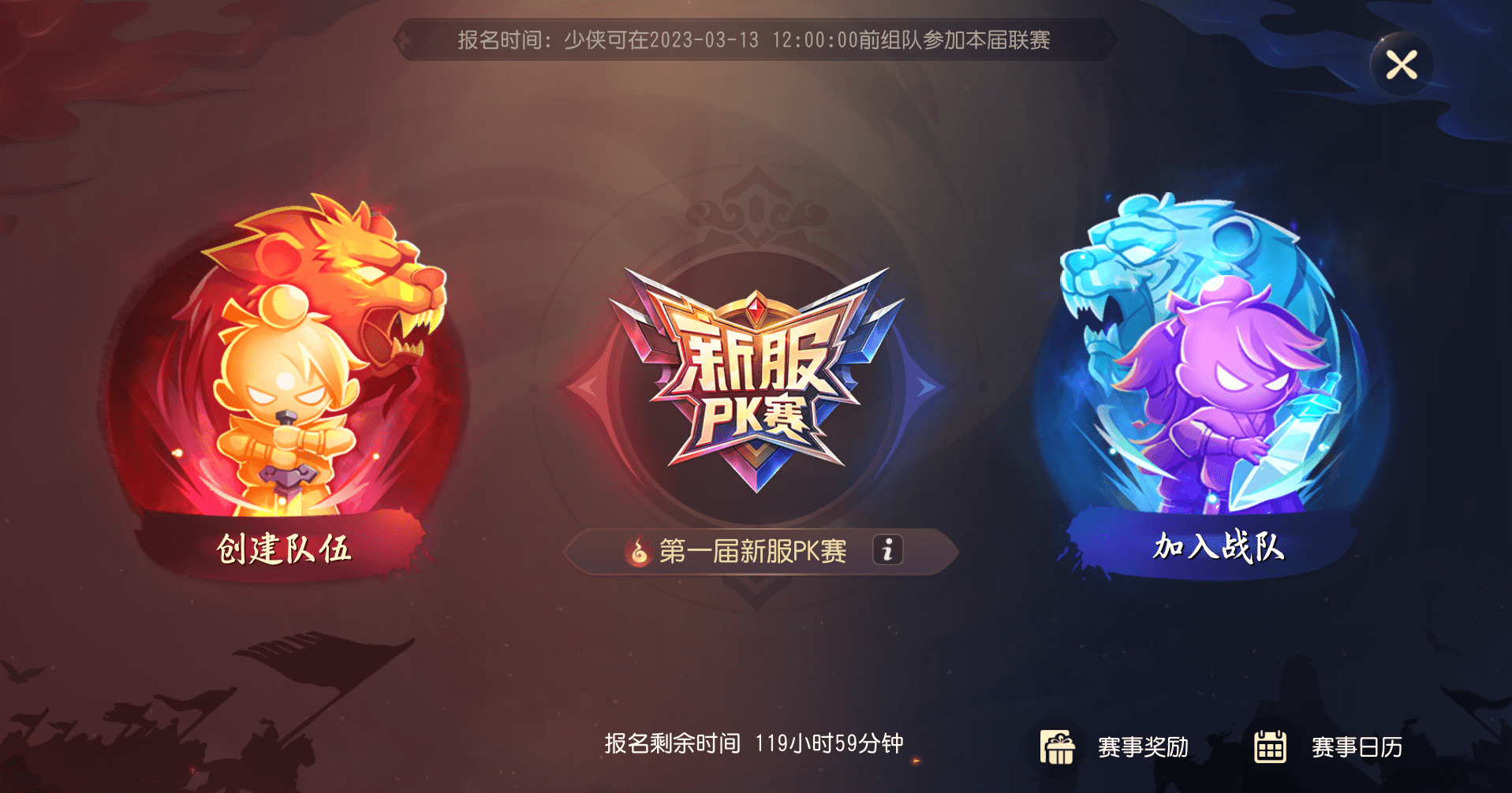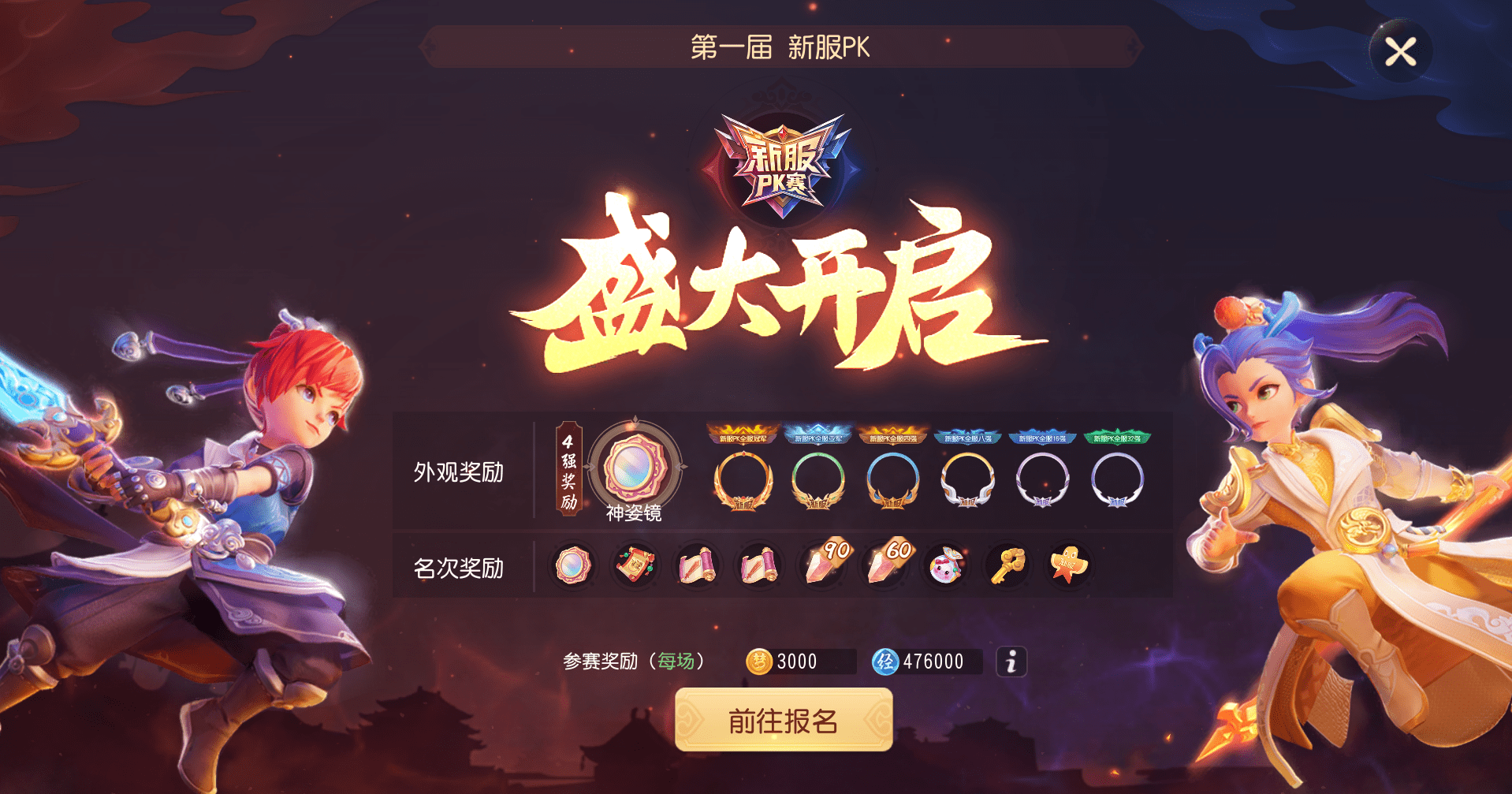 新服PK赛为5v5比赛,需要5-7人组队报名参赛。首届新服PK赛的报名时间为3月8日至3月13日,所在服务器开服时间≥6个月的少侠均可报名参赛。
