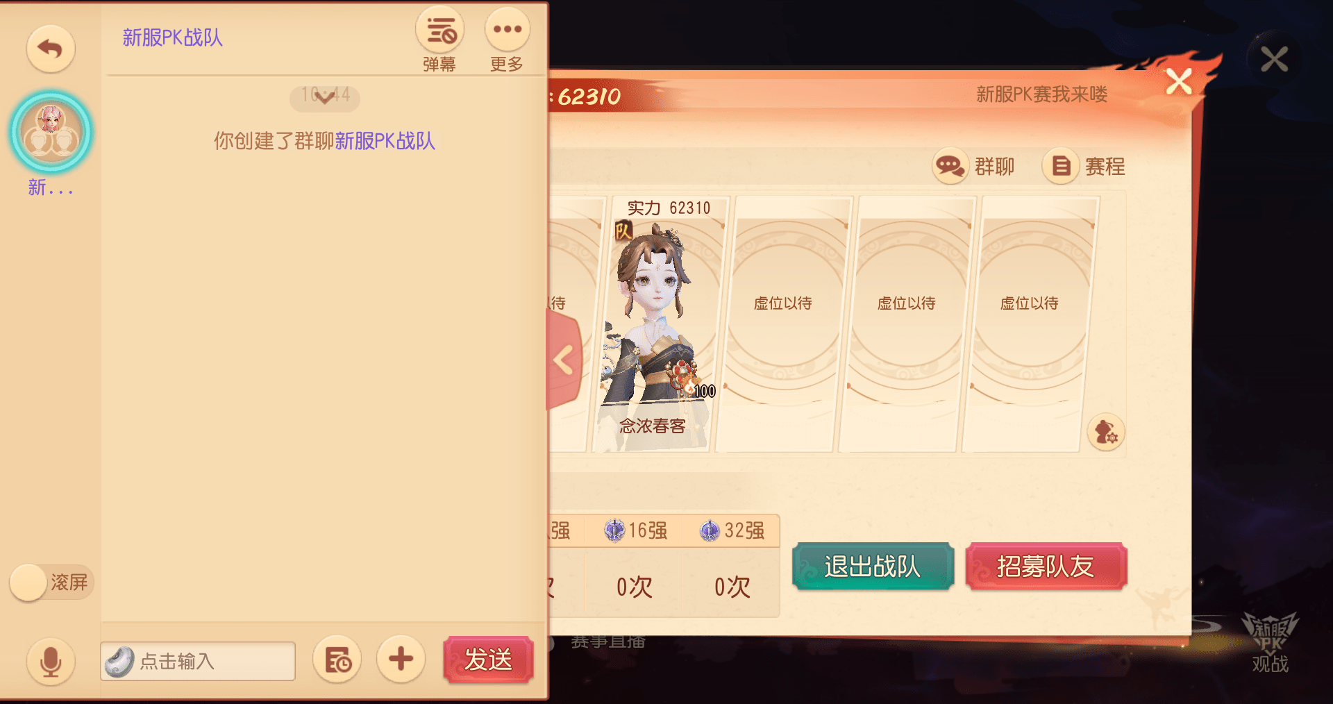 战队成立时将自动生成战队群聊,新服PK赛战队和群聊都不随赛季解散。