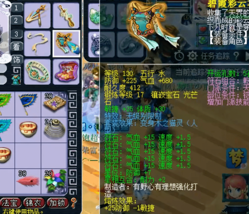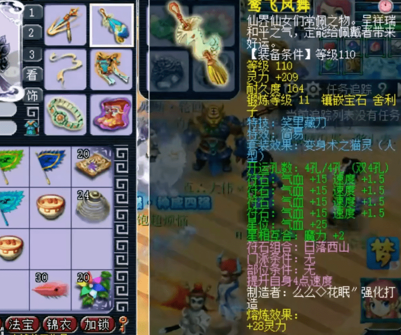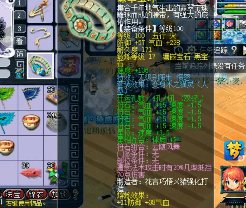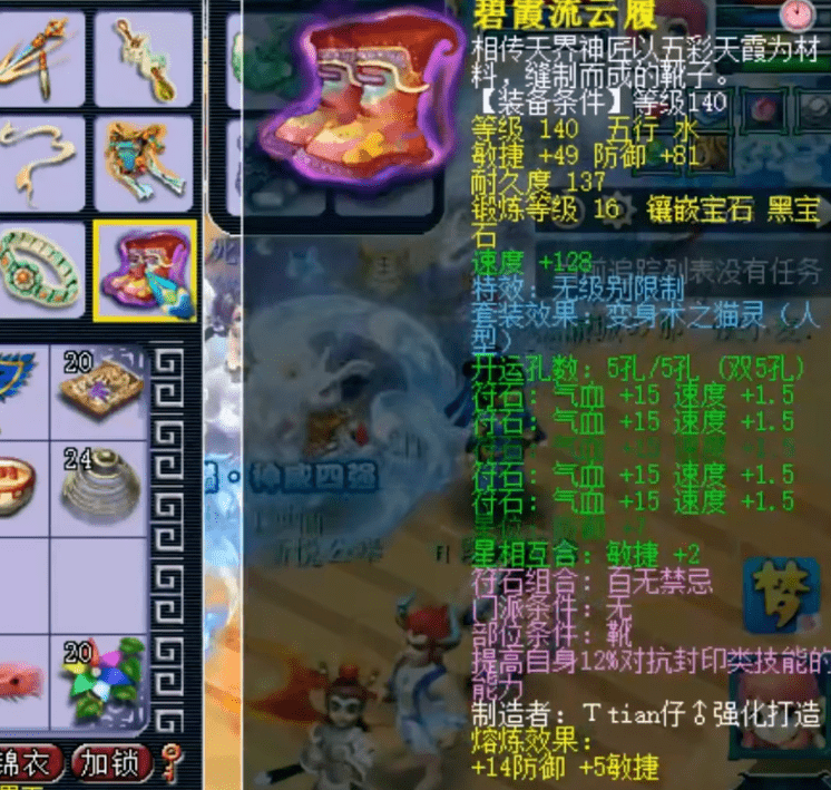 衣服和靴子,则是比较常见的无级别。玩家不仅点化了高级敏捷套变身术之猫灵,而且无级别装备的宝石最低也有16锻!