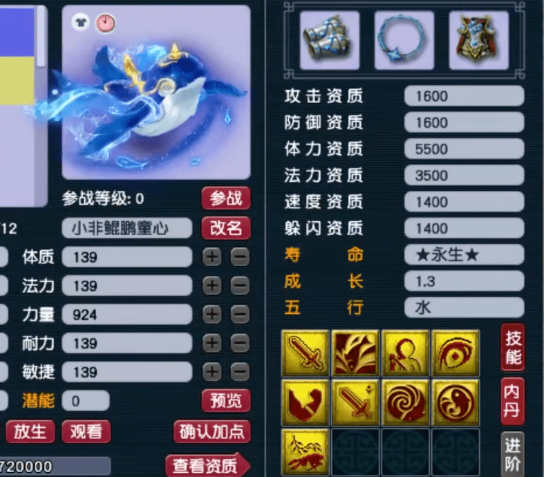 超级鲲鹏,不仅是梦幻西游目前唯一的一只五行神兽,同时也是技能最多的神兽!对战时拉出来,绝对排面十足。