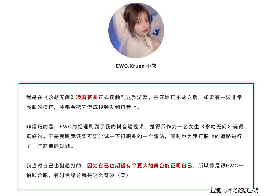 而从两位选手透露的成为职业选手的经历上来说,她们此前都是《永劫无间》的老玩家,而且也都是游戏的技术型主播,这才会被队伍看中。不过需要注意的是,并不是被队伍看上了就能成为职业选手了,还要经过试训,符合要求才行。