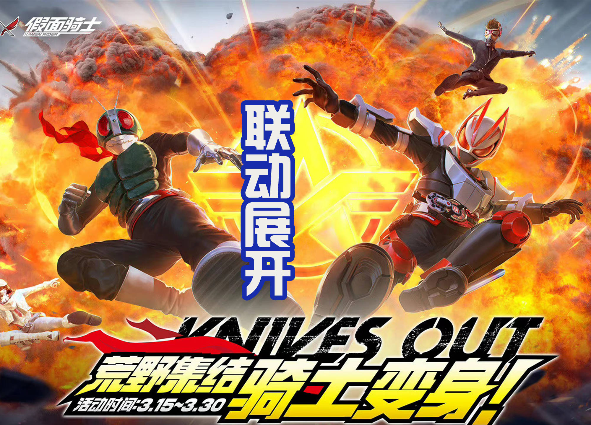 率先出现的就是荒野行动”和“假面骑士”进行了联动的宣传海报,上面写了“荒野集结活动时间3.15—3.30号骑士变身”,然后是假面骑士1号和假面骑士极狐两人在天空中施展出必杀骑士踢,这是假面骑士们的招牌技能,身后则是爆炸起来的火焰。选择假面骑士1号和极狐这两人,也是有着意义的。假面骑士1号是整个系列的开端,同时也是拉开假面骑士舞台的序幕。至于假面骑士极狐的话,他是骑士系列最新的代表角色,选择这两位确实很有意义,那么在《荒野行动》的游戏中,这两位特摄英雄会怎么登场呢?