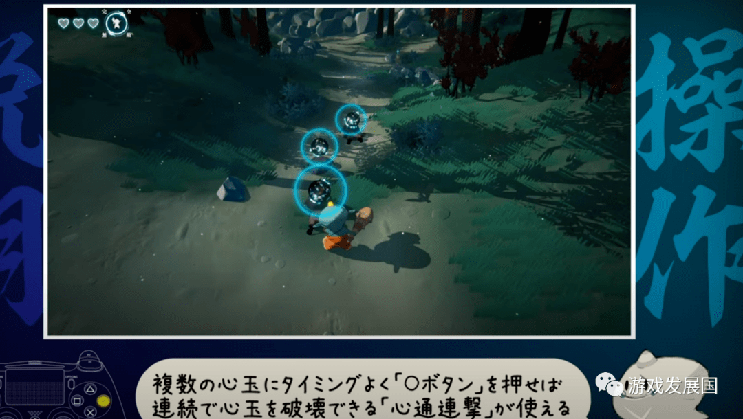 与设定和画风给人的印象不同,本作是一款比较典型的动作游戏,流程采用了任务制形式推进,任务即关卡——所有动作都在其中展开。玩家需要完成佛龛交代的一系列试炼任务,每次完成挑战都能开启下一个区域,平时玩家可以控制着“空太“在海岛上探索,采集蘑菇(代币)、开宝箱或者收集精灵。精灵可以提升血条上限,四个幽灵可以永久提升一格血,玩家需要悄悄潜入他们身边使用技能捕捉,这也成为了前期成长的必要因素;前期的节奏是很慢的,除了收集精灵时会有大鬼来抓你,其他时候基本上都在跑路。较为单一和漫长的新手期没有多少解谜的机制,流程体验是悠闲和舒适的。