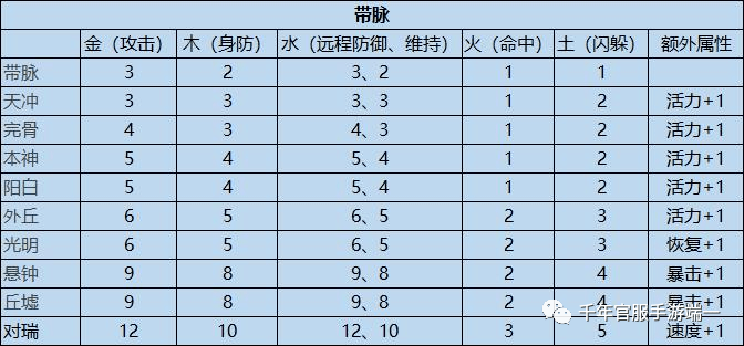 3、带脉:带脉为经脉系统的第三条脉,达到一定元气值能够开启带脉。带脉分别为:带脉、天冲、完骨、本神、阳白、外丘、光明、悬钟、丘墟。
