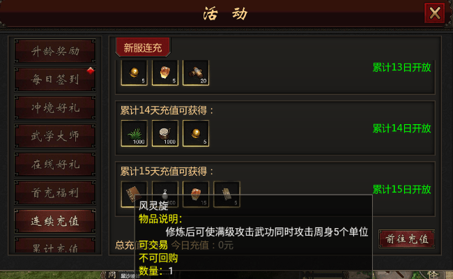 今天就给大家讲一讲,风灵旋这个功法,对于我们打魔物监狱,百炼监狱,以及帝王陵,狐狸洞还有二层的极乐洞都是必备的功法,因为这些副本里怪很多,而且不用你主动攻击就会吸引他们的仇恨,经常会有一大批怪来围殴你,而且我们想要通关副本获取到王陵装备抑或是狐狸装备,就必须要把怪都清理掉,没有风灵旋的话一个一个清太慢,副本都是又时间的,规定时间内没有打完则自动传送出去。所以说风灵旋这本功法极其的重要,是我们后期想玩好这个游戏必备的。