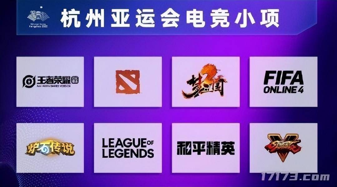 此前,经过亚洲电子竞技联合会、亚奥理事会、国家体育总局多方商议,综合考虑竞技规则的公平性、内容的价值取向、国际影响力和宣传推广等因素,首次将电子竞技划入亚运会正式竞赛项目。并确定了《英雄联盟》、《王者荣耀》(亚运版)、《和平精英》(亚运版)、《炉石传说》、《DOTA2》、《梦三国2》、《街霸5》和《FIFA Online 4》等8个项目入选。