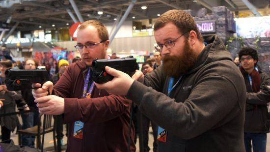 在机器的设计方面,Dodge Roll团队与街机游戏设计大师Griffin Aerotech团队共同设计了主题化定制的街机,其中包括色彩明艳的43英寸抬头显示,一对枪型激光控制器可供单人或二人游玩,还有颜色鲜明、从头到脚覆盖着高画质设定图的机器外壳。
