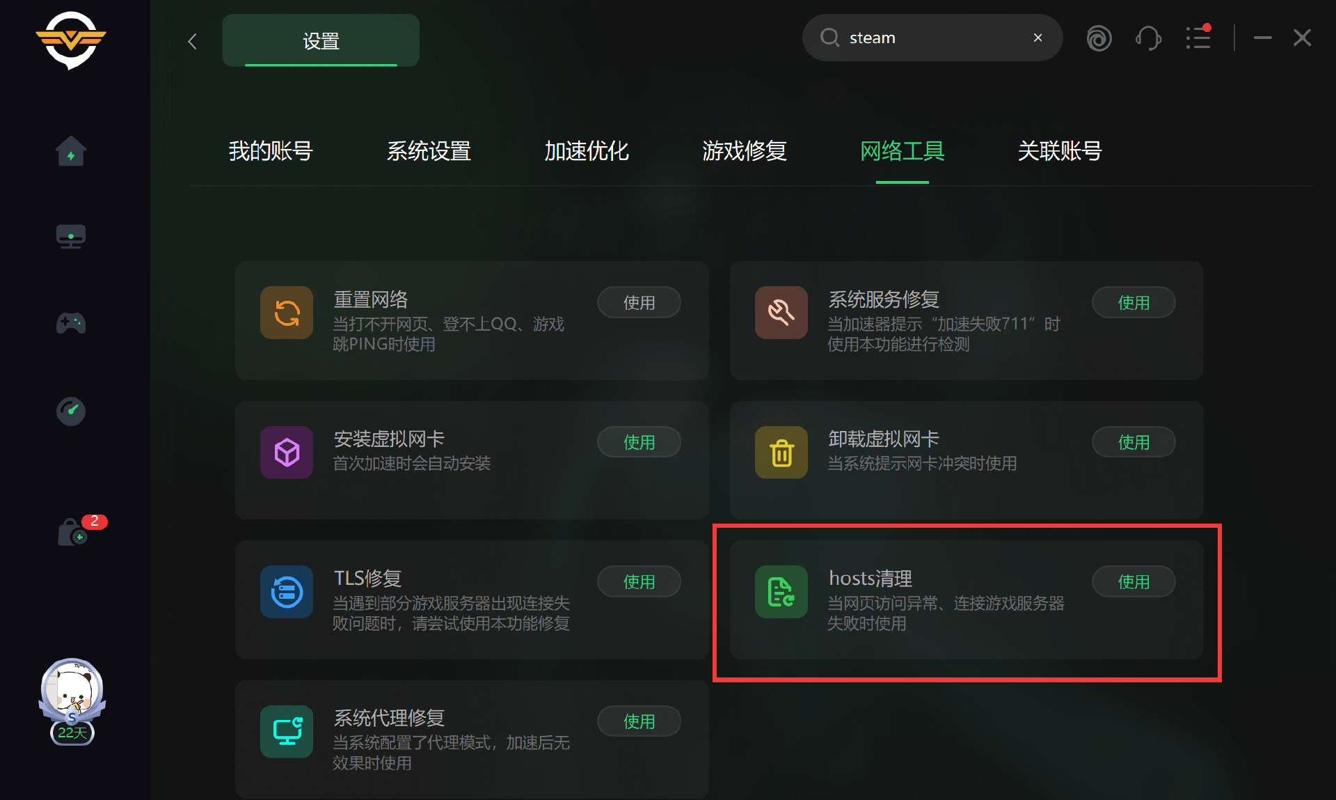 电脑的hsots文件被污染,也可能导致steam社区商店登录不上去,不会手动清理hosts文件的玩家们,可以打开奇游工具箱,清理hosts文件后试试能否登录。