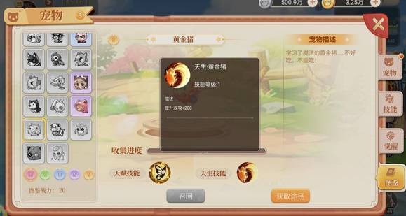 宠物获取:获取宠物的方式有:首充第二天送的女仆,冒险日记中的太极熊猫和浣熊,开服第一天的限购礼包中的鹈鹕,与淘淘乐中抽奖获得S,A,B级宠物,其中,最值得培养的宠物就是加双攻的宠物,也就是加自身攻击的宠物是要优先培养的,例如:可爱女仆、鹈鹕、黄金猪。