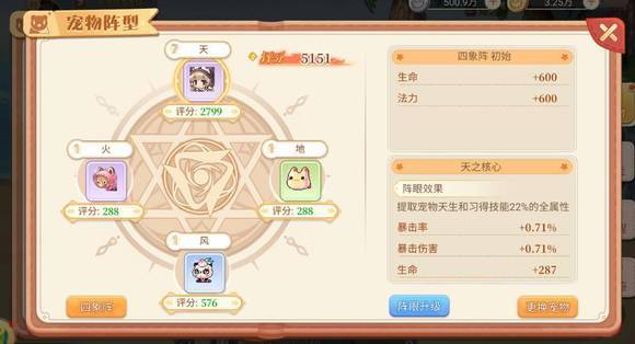 阵型中需要注意的是,首先主要先升级加双攻的宠物,也就是前面说到的,女仆或者鹈鹕,如果后面黄金猪出来了,那黄金猪就是首选。出站宠物也是一样,出站宠物选择女仆或者鹈鹕。如果不出战带双攻的宠物,那么它的属性也无法加到角色身上。
