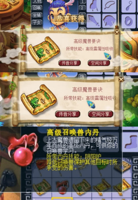 可惜,这两本高级魔兽要诀所携带的技能,居然跟第1本一模一样!这波复制、粘贴,也是没谁了。而高级召唤兽内丹所携带的技能,也是只能用于高级召唤兽内丹点化任务。哎,难受。