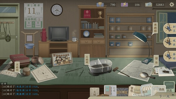 在捕捉与培养蟋蟀的环节中,游戏设置了诸多小游戏。你可以借助各种道具,去野外草丛中翻找蟋蟀获取;也可以排列出几十只虫蜕,让蟋蟀轮流进食;有时也需要睁大你的肉眼,观察两只蟋蟀各部位的大小粗细等,据此猜测孰强孰弱……