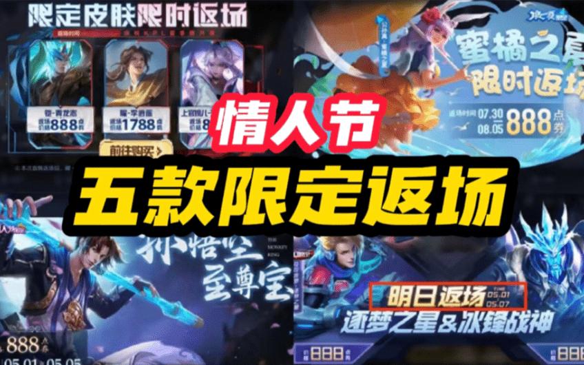 王者荣耀七款限定皮肤返场