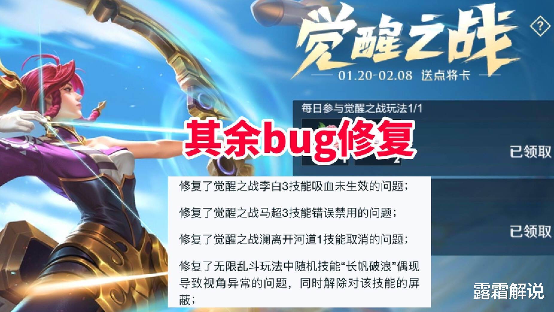 李信年限皮肤大招特效异常的问题终于修复了,对于没有这款皮肤的玩家来说也是一个好消息,就是因为这个问题,光信的胜率都提升了不少。觉醒之战李白、马超还有澜的问题修复之后,英雄强度会强上不少。