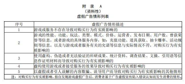 另外,《游戏分发与推广基本要求》团体标准征求意见稿中还列举了5种虚假广告情形。