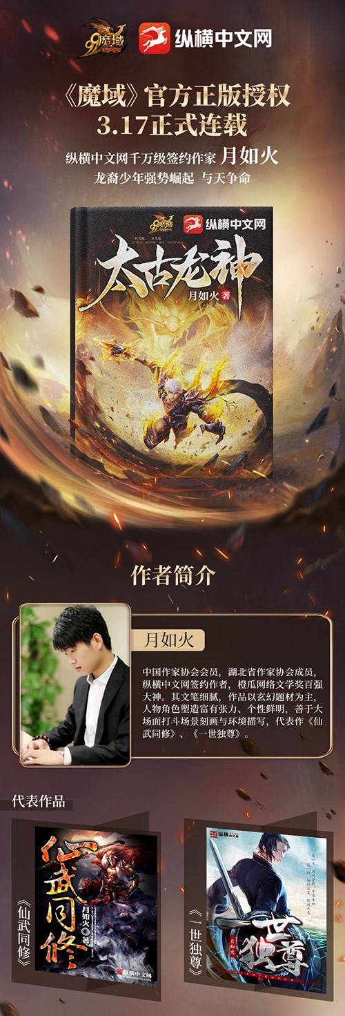 而此次福建网龙魔域官方之所以力邀月如火执笔魔域IP定制小说,还有一个重要原因——月如火是福建网龙魔域的资深玩家,早在踏入网文圈之前,月如火就因对魔域的热爱撰写过超十万字的魔域同人作品。此次执笔,月如火将以热爱为作品注入灵魂,带给魔友一场热血盛宴。