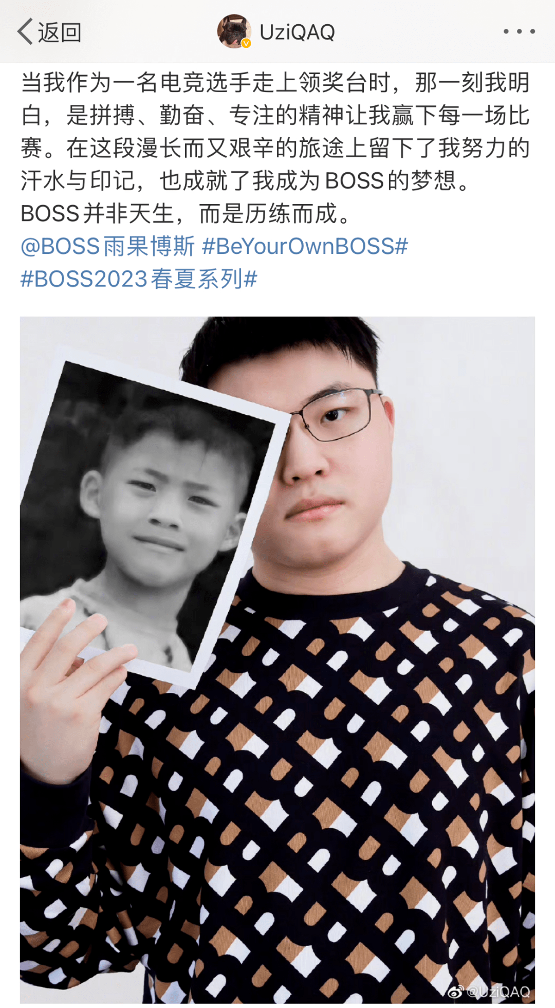 比如Uzi的明星选手形象,既是天赋的选择、粉丝的认可,也是乘着LPL品牌建设的方向所建立起来的。即便已经不活跃在职业赛场上,他仍然能与耐克、BOSS雨果博斯等国际品牌展开合作,国内目前还没出现影响力能与之相比较的电竞选手。