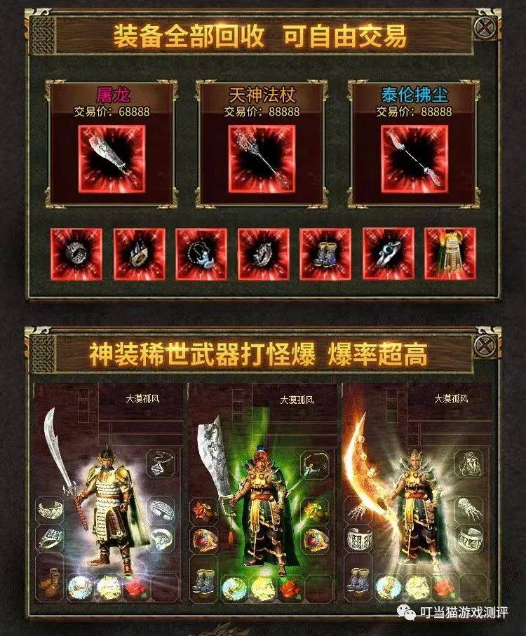 游戏里面,装备是大家最为关注的,它种类繁多,大抵上是可以满足玩家的需求,尤其是一些珍稀装备,是没有等级的限制的,新手玩家也可以直接穿戴,瞬间变成大哥。我想玩传奇的玩家们追求的也就是极品装备了,谁不想自己变得厉害呢?谁不想技能特效变得炫酷呢?值得一提的是,有少数普通的装备经过炼制之后也会获得极品的属性,对我们玩家来说,简直是如虎添翼,性价比直线飙升,打造平民玩家的绝世套装
