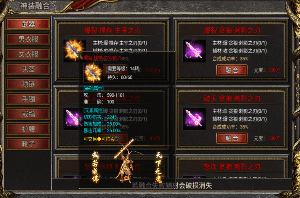 从低转装备到高转装备想要爆都不是没有那个可能,但是咱们得有那个人品啊。所以在黑暗光年游戏中想爆什么装备都能爆!但是脸黑的时候咱们也可以选择区合成。后期主要获得高转武器的方式终归还是从合成得到的!拿14转来说合成14转装备需要13转+12转的去合成