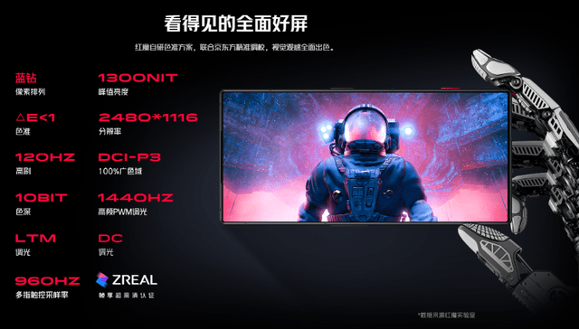 红魔8 Pro系列采用的是6.8英寸的京东方柔性屏,这款屏幕是蓝钻排列,分辨率为2480×1116,峰值亮度可达1300尼特,画面呈现清晰,强光环境也能看清屏幕;还支持120Hz的高刷,960Hz触控采样率,操作起来,画面流畅不卡顿,日常使用、玩游戏都妥妥的;同时,这块屏幕还做到了1440HZ高频PWM调光和DC调光,一定程度上避免了DC调光的屏幕偏色问题,还能有效防止屏闪,使用过程呵护双眼。