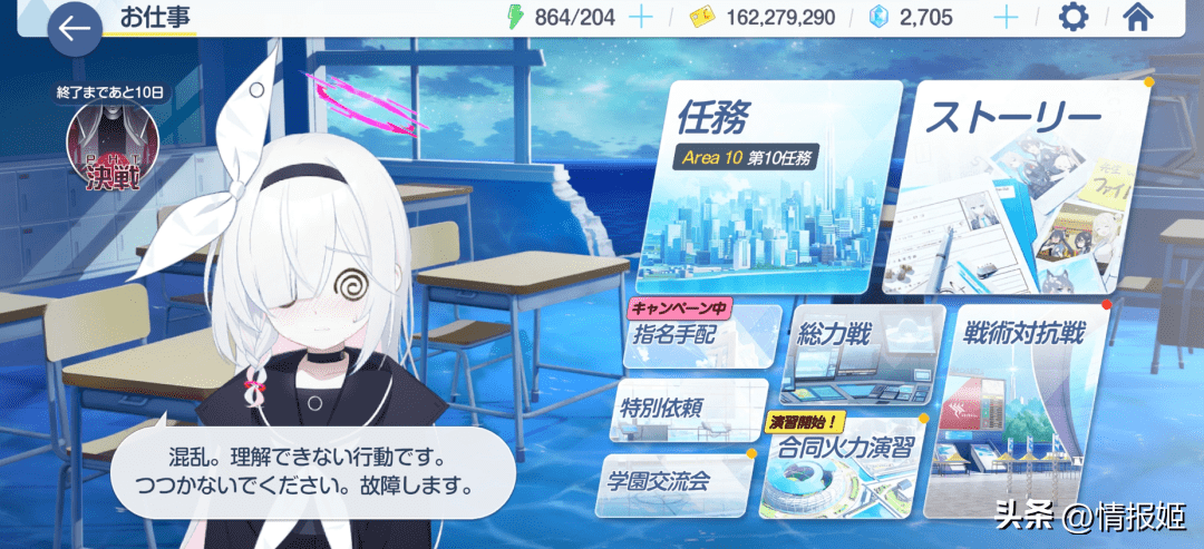 一言蔽之,这个世界观充斥着这种默认玩家已经了解的“理所当然的不自然”的常识。这些关于世界观细节的设定,BA并没有把你当做像其他游戏一样的新玩家一般给你塞一大堆专有名词和世界观逻辑还细致拘泥地解释干净,而是 刻意要你保持着这股对不自然事态的疑惑和未知来进行游戏。