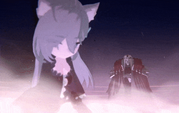 简单来说,他们 不是和普通AVG或传统GALGAME一样为展示角色稳定姿势下的场景为而使用CG,而是 专门抓取角色转瞬即逝的瞬间POSE、或正在激烈动作中的某个动态瞬间作为CG取景,且每张CG仅仅只会停留极短时间就“奢侈”地切换。