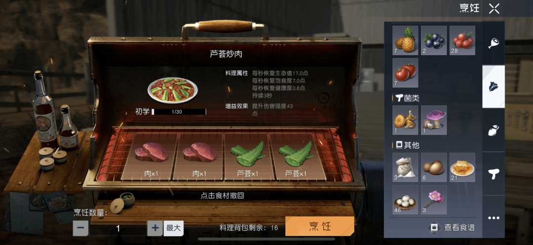 擅长烹饪的幸存者想必也发现了,有一些料理不仅能充饥还有特殊的增益效果!战斗开始之前必须先来一波有增益效果的美食~