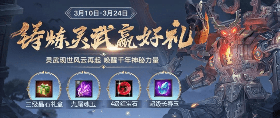 首先就是新玩法灵武系统,一经爆料就收到了大量玩家的关注,体验过测试服的小伙伴们反馈也都很不错,非常值得期待。值得一提的是,官方这次还非常贴心的放上了玩法教学,大家只要体验灵武铸造就可以领取好礼,可以说相当不错了。