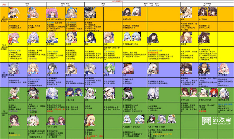 2、部分舰灵在出战位与支援位可能存在较大的表现差距;同时一些特定环境、羁绊技情况也会影响部分舰灵的梯级,已在表中注明。