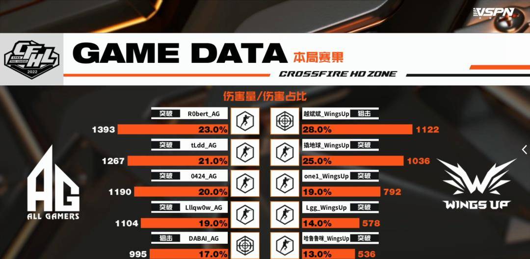 首局鹰眼,AG率先担任潜伏者。DABAI一上来就狙击抽掉哈鲁鲁咪,AG先声夺人。后续越斌斌狙击刷屏,WU拿到分数。随着比赛的进行,AG进攻战术更加多变,反清酒吧频频得手,DABAI狙击无敌,AG取得6-2的领先。换边之后,越斌斌赢下与DABAI的1V1残局,WU将比分迫近。关键时刻AG选择后点防守,DABAI狙击连续刷屏,AG也连续拿分,以9-4的比分先下一城。