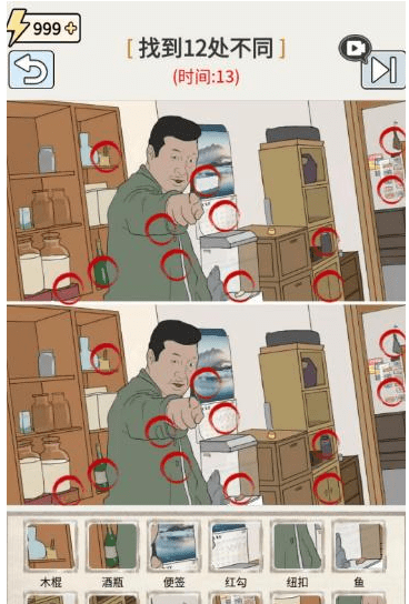3,最后玩家看完所有的图片找到所有的不一样物品,然后开始点击会自动画圈然后物品的名称会显示在下方的位置,接着玩家可以找不到的话可以对比下图来寻找自己的hi是会非常好找的。