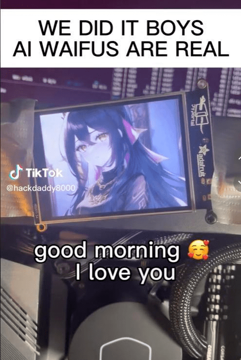 而在大洋另一边,2022年底TikTok上一位技术宅Bryce也使用当下几款AIGC软件为自己量身定制出了一位“AI老婆”。他用ChatGPT实现自然对话,用Stable Diffusion实现人物图像输出,用Azure实现语音输出,用3D打印打造了一具“身体”,通过摄像头与扬声器与之进行互动,可谓是提前20年体验了一把“赛博老婆”。