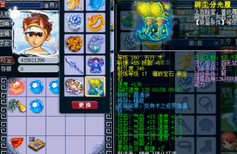 鞋子是17锻160晶清精致双蓝字,本来160晶清鞋就已经够牛了,还多个精致特效,多一锻宝石的优势瞬间就体现出来了,因为大多数服战玩家只能配置16锻160晶清鞋。