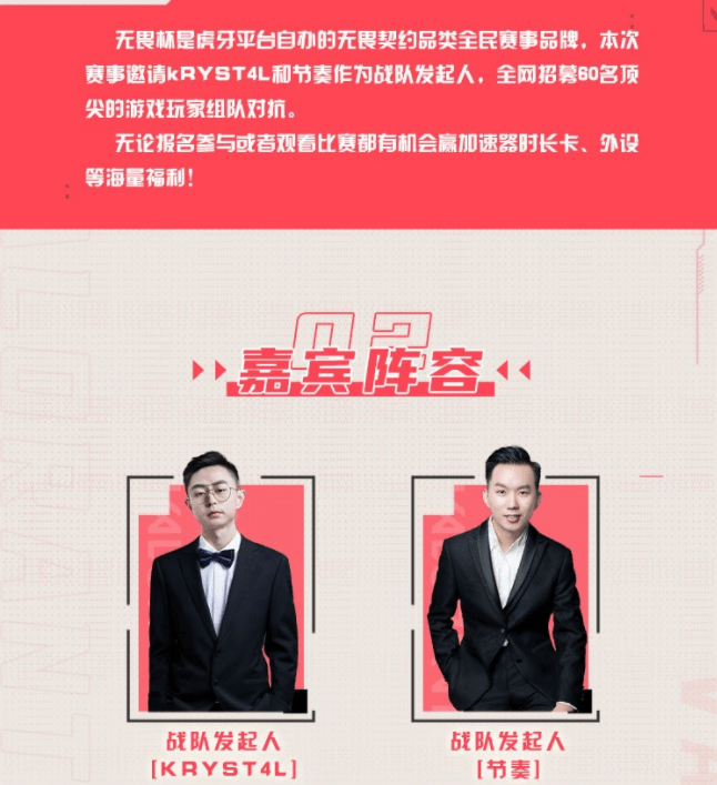 作为下一款必火的国内游戏,目前虽然还没有上线,就已经可以在各个平台观看到这个游戏的相关直播了,虎牙平台最近也开始邀请水晶哥和节奏来一波PK,在这一次的“无畏杯”中,玩家可以分别组成2个队伍,分别由水晶哥和节奏来组建。当然了,选手是由虎牙招募60名全网顶尖的游戏玩家。到时候会给大家展现一种综艺的形式来挑选选手,不由得让我们想到完全就是“我为你转身”的某综艺节目。
